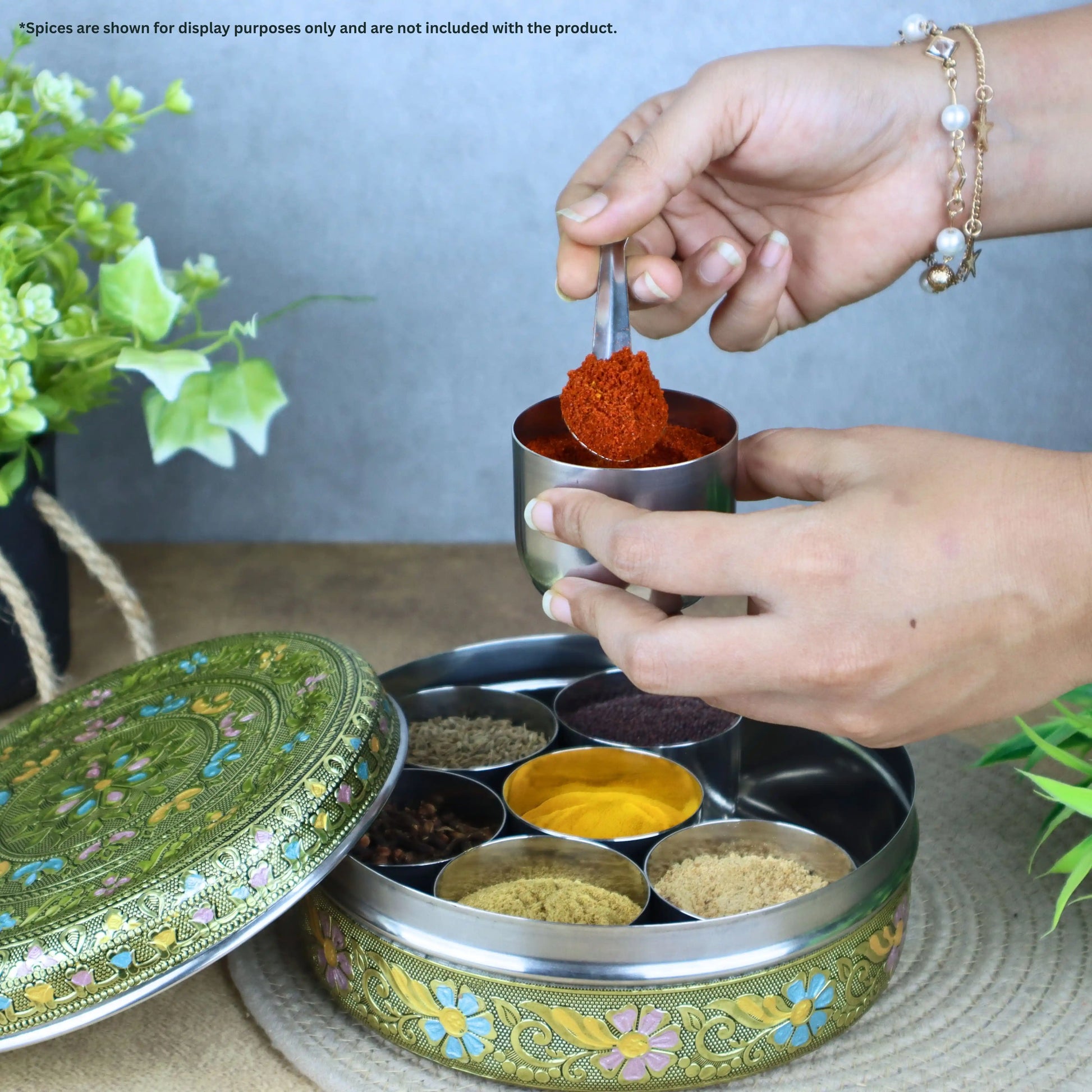 1 Stainless Steel Spice Box with Floral Meenakari Finish