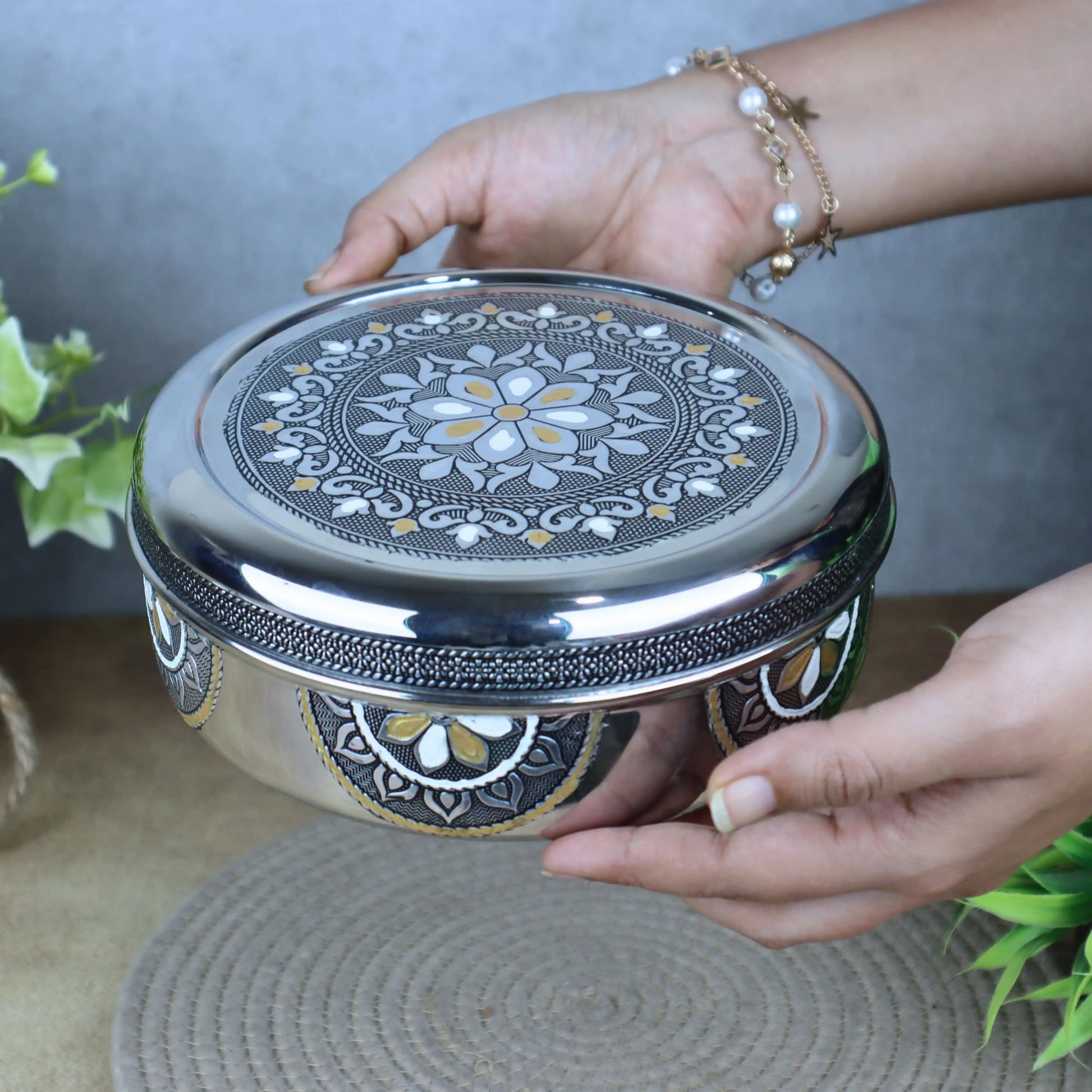 Add a classic piece of Indian craftsmanship to your kitchen with this Stainless Steel Spice Box — practical, beautiful, and perfect for gifting loved ones on any special occasion.