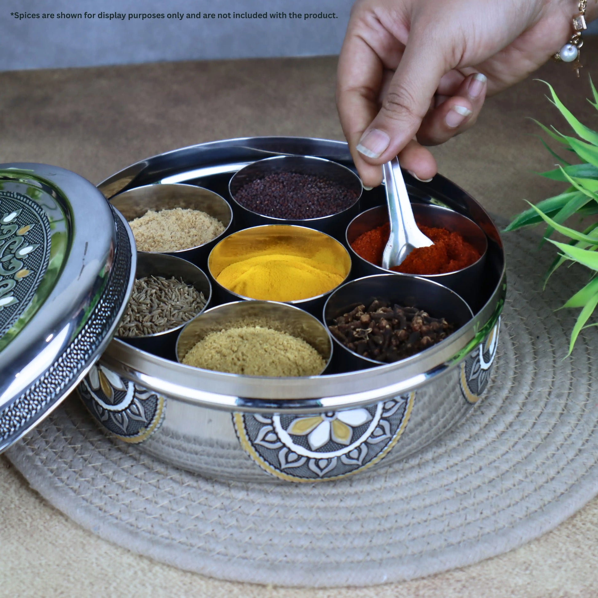 1 Stainless Steel Spice Box with Oxidized Meenakari Finish