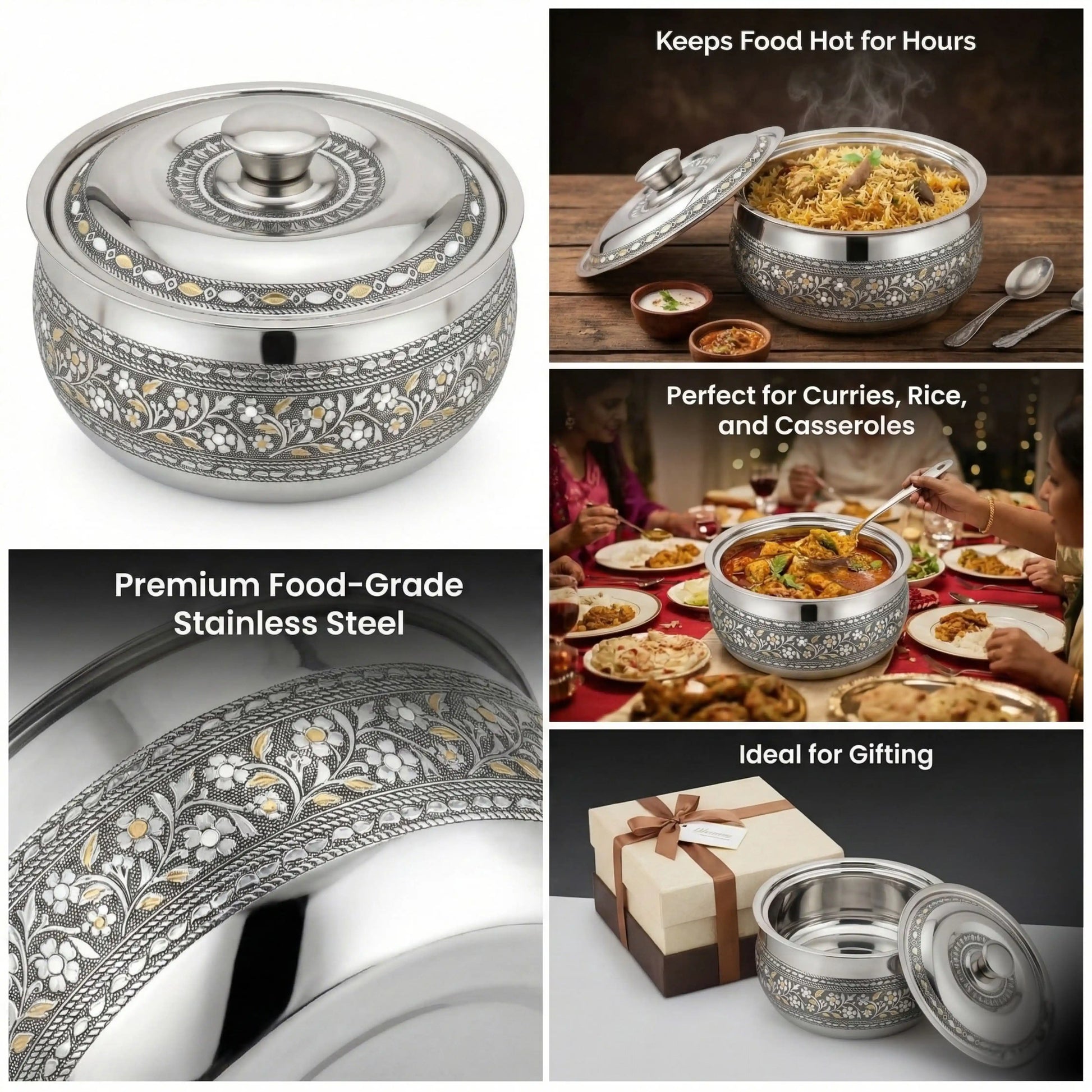Product Includes :- 1 Stainless Steel Hot Pot Casserole with Lid