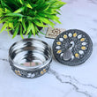Steel Container with Lid Kitchen Storage | Peacock Embossed Oxidized Meenakari Snack Box (Silver)