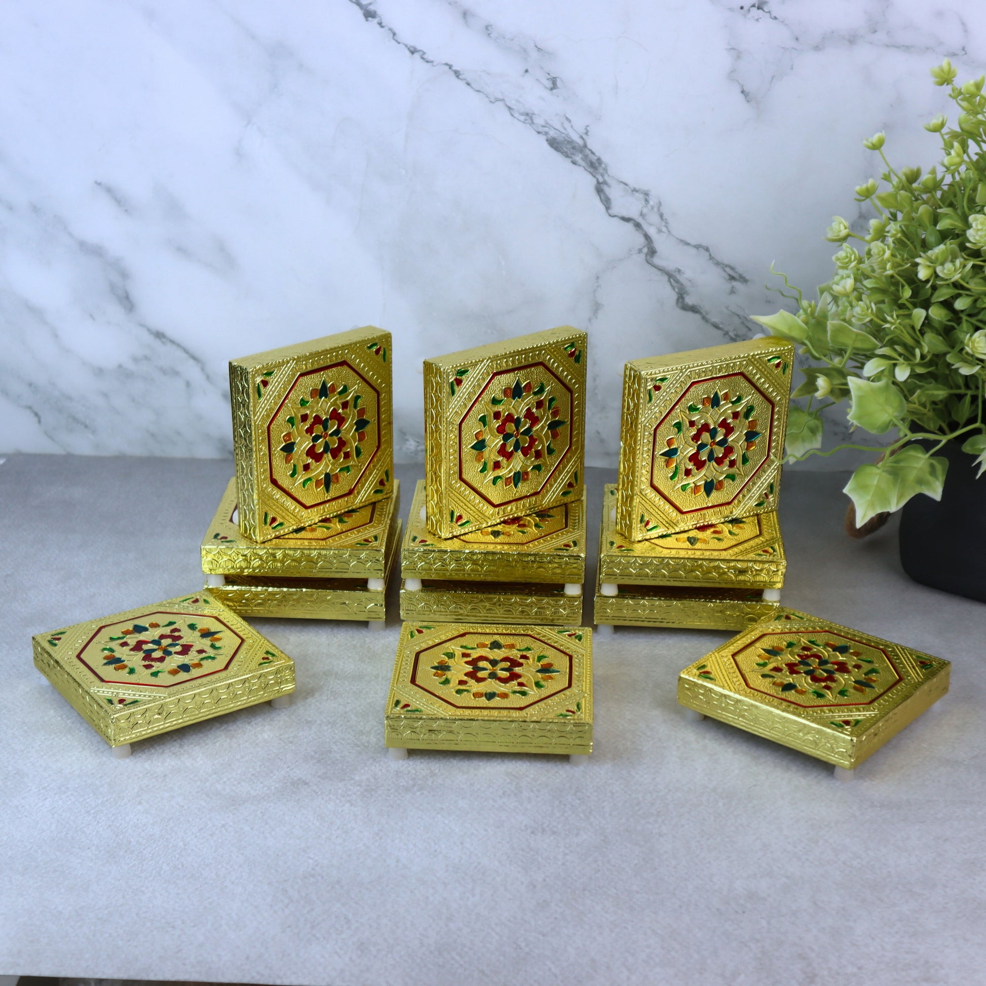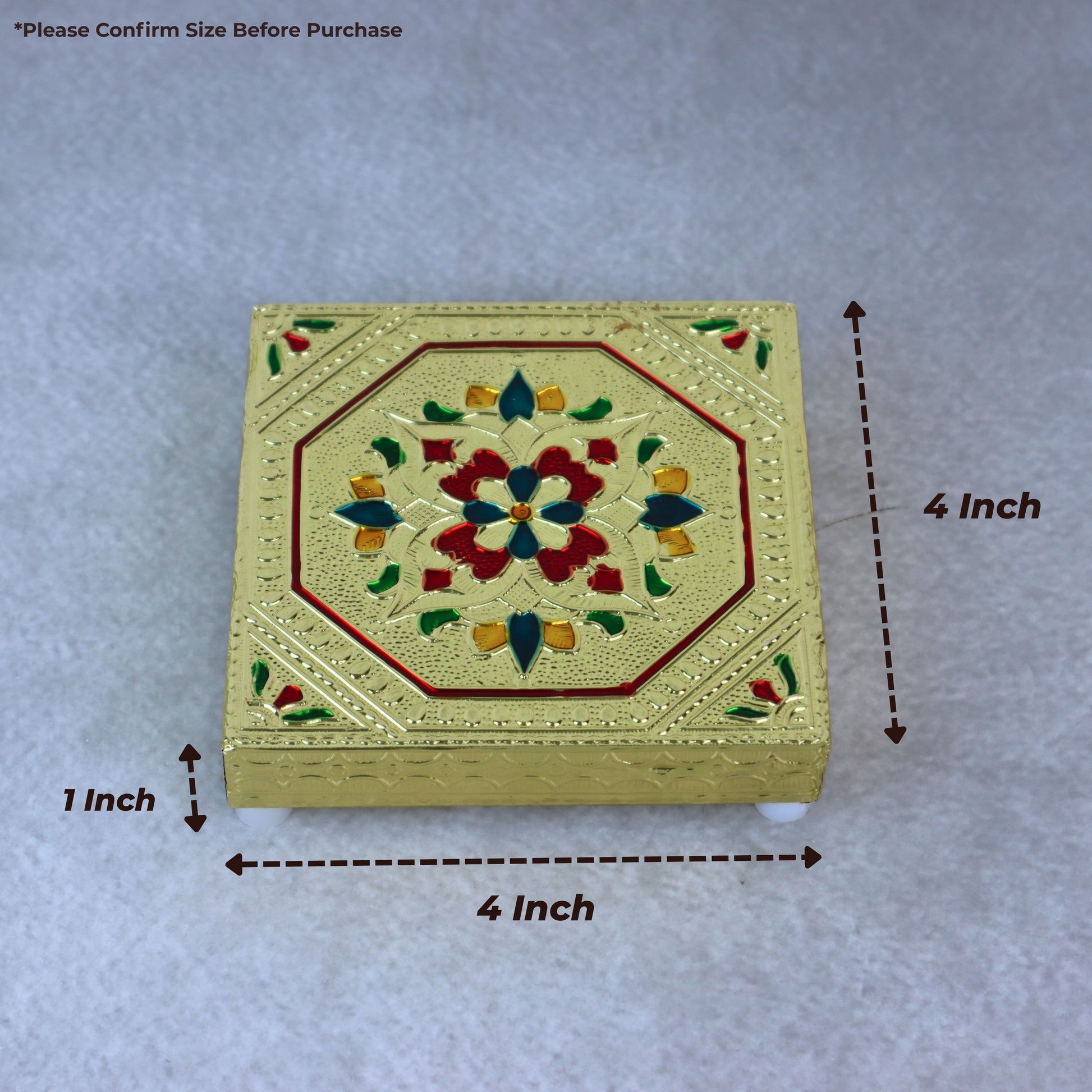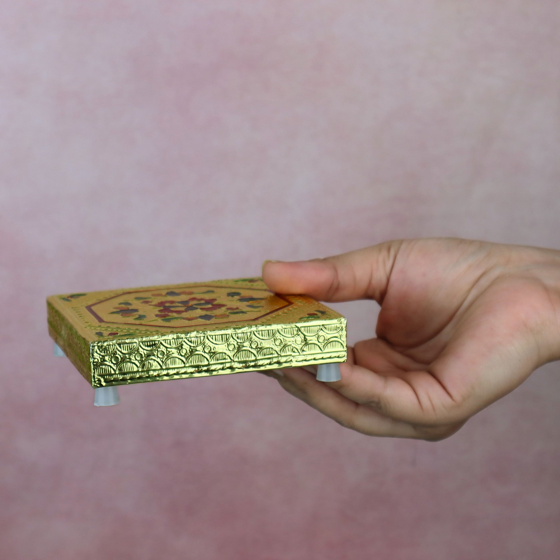 Wooden Pooja Chowki Bajot 4x4 | Traditional Handcrafted Gold Finich Decorative Chowki
