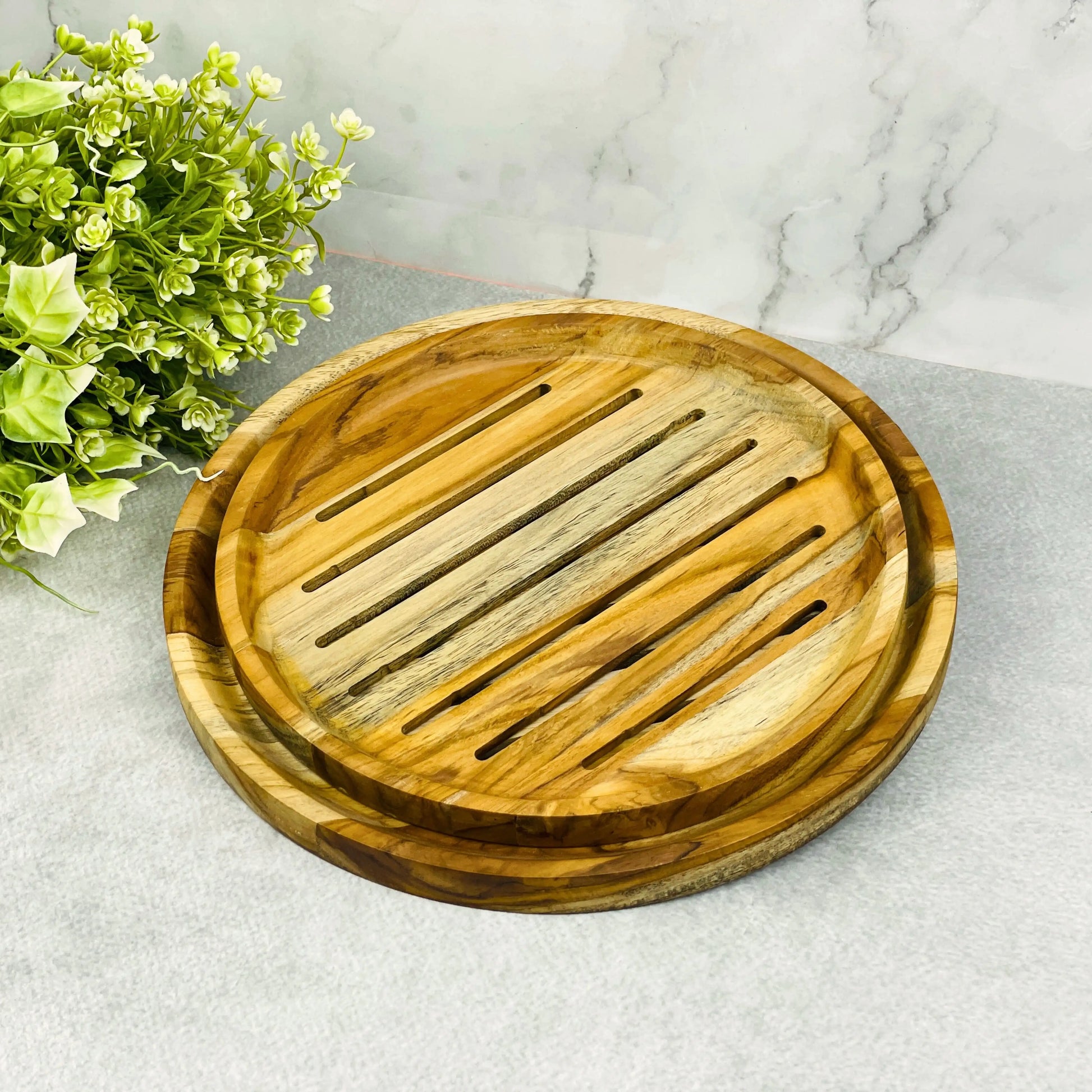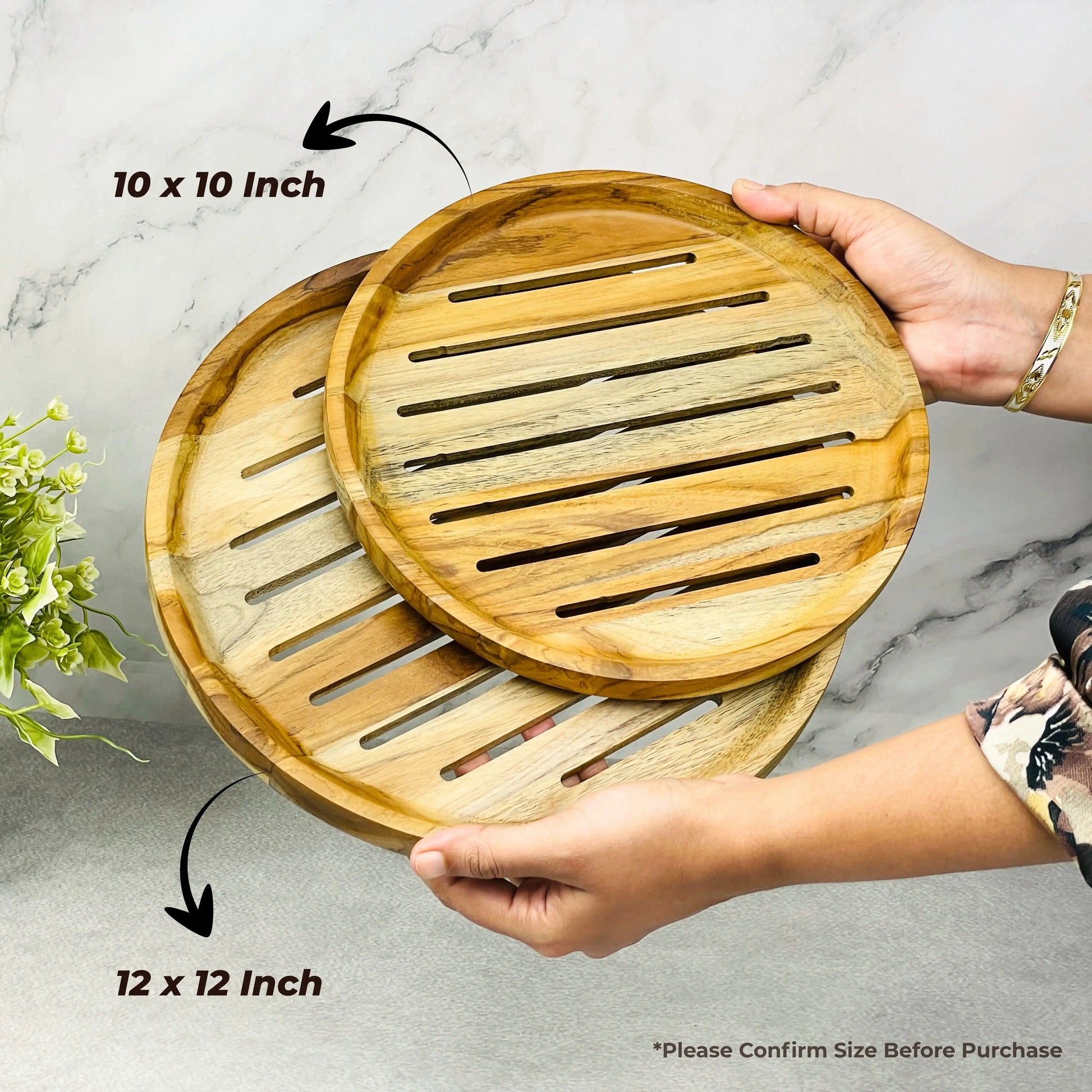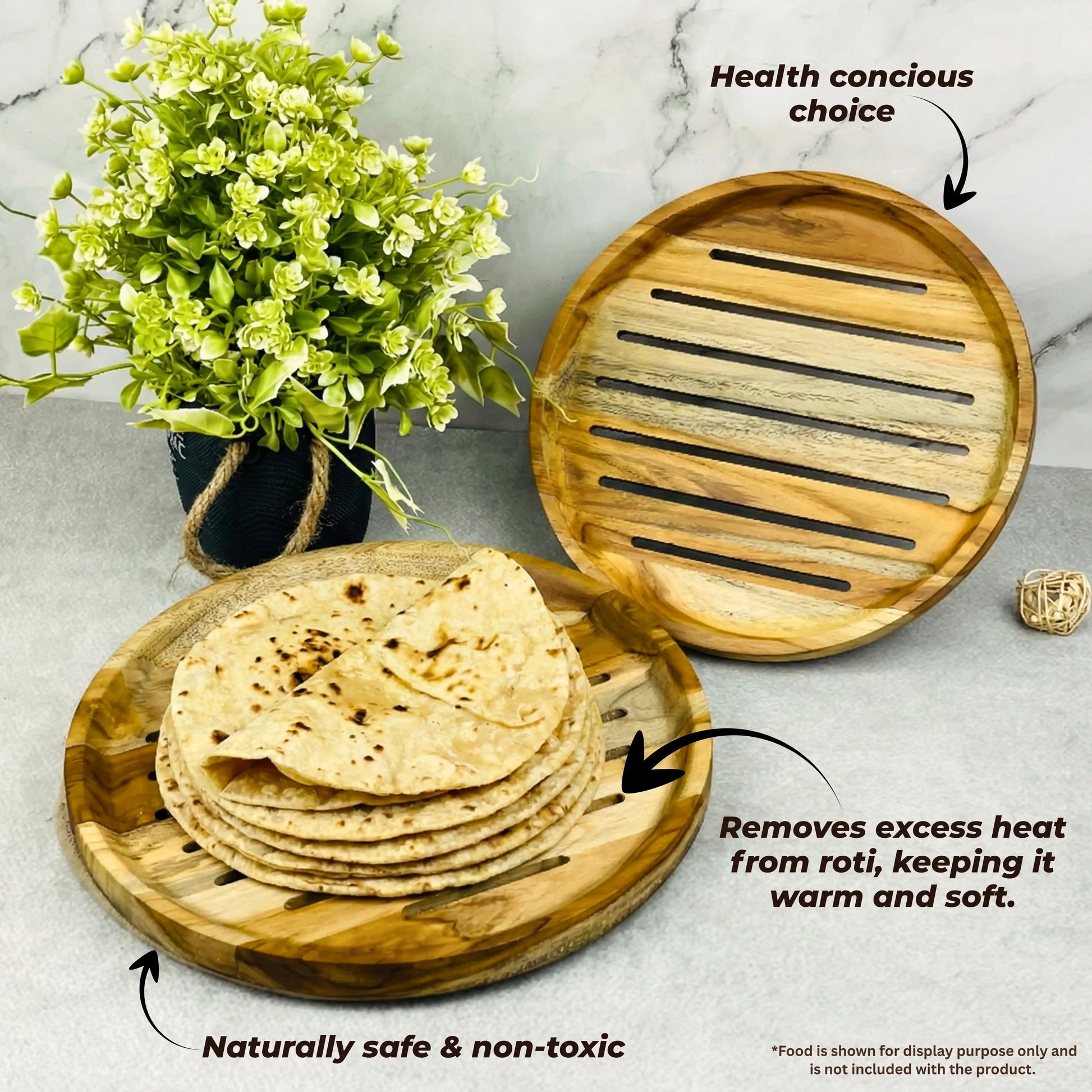 Wooden Roti Serving Plates Set of 2 | Teak Wood Chapati Plates for Dining & Table Serving